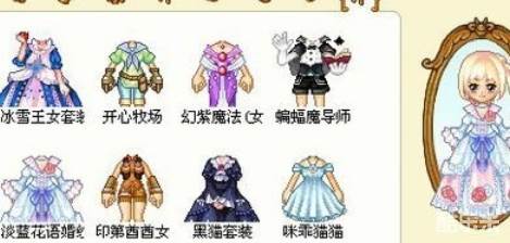 皮卡堂中都有属于玩家自己的衣橱,玩家可以根据自己的审美和喜好来进行搭配,服装风格样式非常多样,无论是可爱风格还是华丽风格的服装都非常好看,玩家的选择非常多,像下图中的粉色日风裙和冰雪王女套装就非常可爱,黑猫套装就很优雅华丽。还有一些比较独特带有主题的服装,比如开心牧场和蝙蝠魔导师。