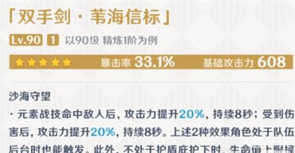 如果大家想单纯提升伤害,那么螭骨剑也是一个非常不错的下位武器选择,苇海信标真正的优势是32%的生命值加成,而可以完成吃到这一点加成的角色,目前就只有迪希雅。