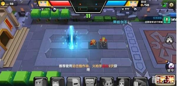 如图,这关是教你分秒必争,后面有几个关卡是分秒必争的,与玩家对战时快到传送门了离下一波兵还有几秒钟(这时候敌人兵已经没了),用冲锋部队会快速进传送门打战神。