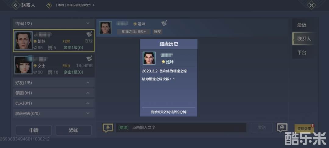 另外,为了延续这段缘分,当结缘时间结束后,若结缘双方不为好友且好友未达上限,则自动加为好友!