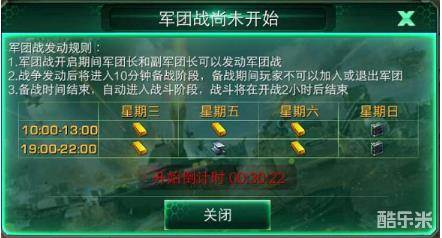 军团战每周三、五、六和周日开启,每天两场,若军团战胜利,军团荣誉值增加,军团荣誉值越高,巅峰军团排行榜越高。另外无论输赢,参与军团战的玩家都能根据自己获得的战功领取到对应的奖励,以系统邮件形式发送。