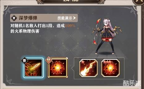 普攻(深梦爆弹):对随机1名敌人打出1段,造成109%的火系物理伤害,作为初始S来说,该普攻的伤害在正常水平,还是有几率收割残血目标来增加怒气值的。