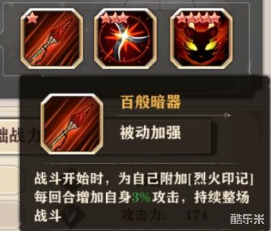 基于莲月属于初始SS的伙伴,这个被动可以说是天生被动,被动:每到自己战斗行动前,附加【烈火印记】,每回合增加自身3%的攻击,这个印记可以进行叠加。可以说只要保证莲月能整场战斗不阵亡的话,那么最终回合的莲月伤害可以达到一个十分可怖的伤害量。