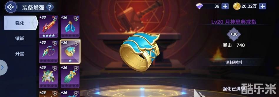 装备可以提高我们各个属性,武器和项链可以提升攻击,戒指可以提高暴击。装备强化时大家可以优先强化这个部位的装备。