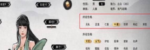 1、鬼谷八荒游戏在玩家建立建立游戏角色的初期就可以对自己的内在性格和外在性格进行选择。其中内在性格总共有七种,其中挑1。而外在性格有12种,可以选择两种。总共三个性格词缀组成了玩家的立体游戏形象。而这些性格将会十分明显的影响npc对玩家的态度。