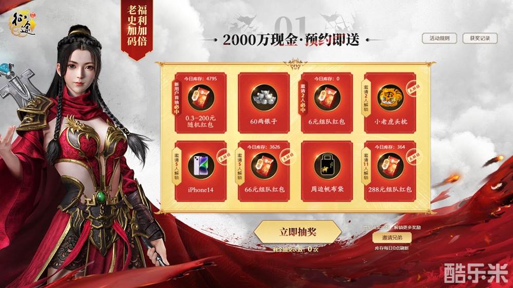 老史领衔,官网预约福利再加码,真金白银倾情相赠!奖励直接暴击翻倍,2000万现金豪礼分不停!新用户首次预约,参与抽奖100%可领现金红包,不用兄弟帮忙砍一刀,直接微信提现到账!邀请兄弟组队参与活动,还能额外获得抽奖机会,解锁更多豪华大奖。