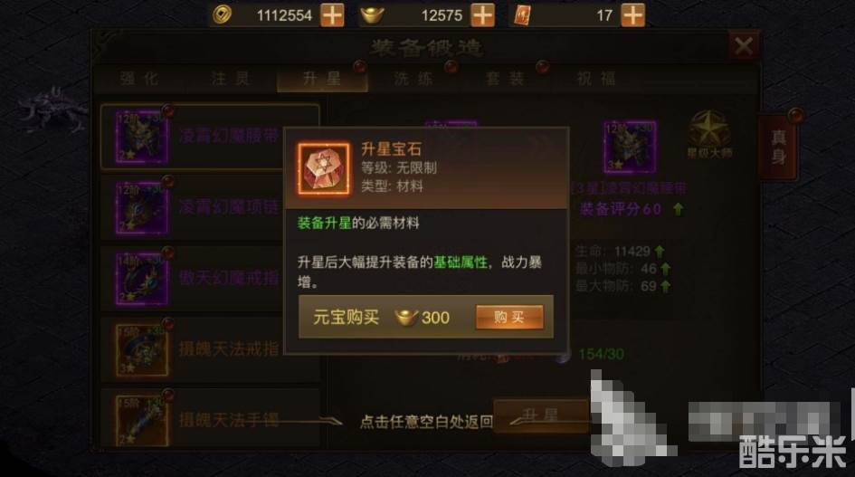 1.给装备提升星级:当装备达到紫色较高阶的时候再去刷更好的装备就比较难了,主要是爆率就那么低,通过强化中的其他手段都无法提高装备的评分,但是升星可以。