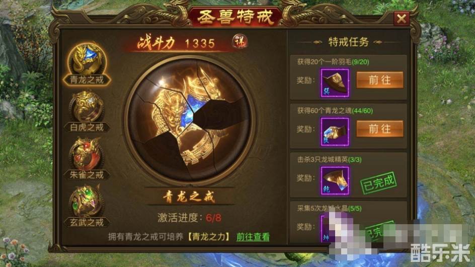当等级足够的时候会出现支线任务,让我们去提升四圣兽特戒的特性,有了特性之后就可以抵挡圣灵副本中的BOSS攻击效果,这样就可以轻松打BOSS啦。