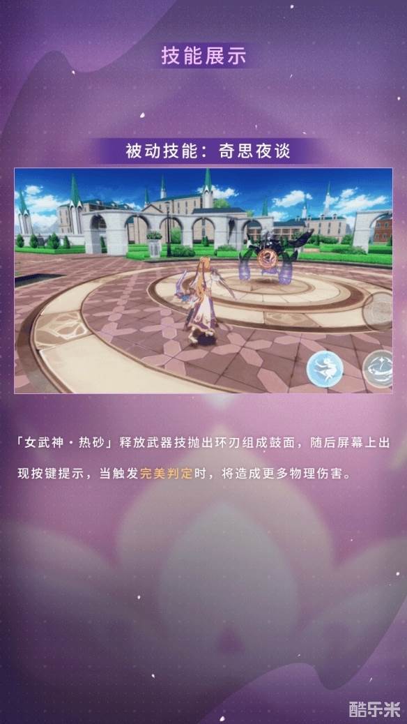 「女武神·热砂」是量子属性物理伤害角色,在战场上她将踏着轻盈的舞步,跟随旋律翩跹而舞。她拥有多种手段为敌人附加流血积蓄值,自身造成的伤害均视为流血伤害。