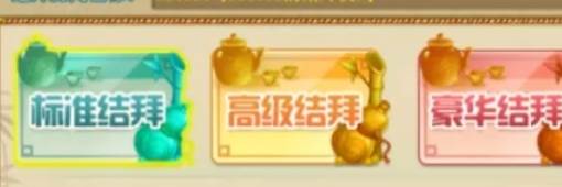 结拜有三个阶段,一开始结拜只能走标准的结拜,之后做日常的任务可以提升自己的结拜的水平,可以升级为高级结拜和豪华结拜,当然也是需要消耗一些道具才能达成这些高一级别的结拜的。