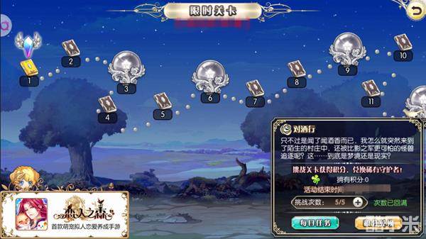 每位小伙伴一次性可拥有五次挑战机会,挑战限时关卡每次需消耗1点挑战次数,观看剧情关卡不消耗次数哦,活动开启时,每位玩家拥有5次挑战机会,之后每一段时间恢复1点挑战次数,想要尽快积攒积分的小伙伴,那就不要错过任何一次挑战机会哦~