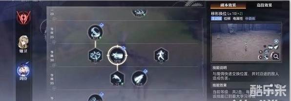 【移形换位】作为剑侍为数不多的位移技能,能够使剑侍和魔偶互换位置的同时造成伤害,可以和【投射】、【利刃狂舞】等技能配合,达到快速清图跑图的效果。但由于升级后的伤害提升并不明显, 且并不会减少CD,因此其实点一级用于赶路即可。