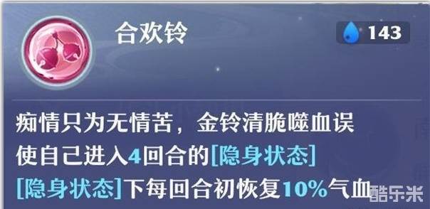 4、合欢铃:拖延时间,等待痴情咒回复CD,用来保命。