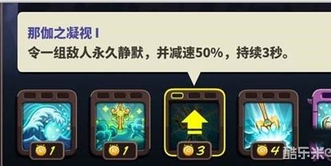 (3)那伽之凝:控制系技能,在游戏中有着不错的效果,可以有效的控制控制敌人,对敌人造成永久静默的效果,同时还会触发一些其他的负面效果如:减速,这些对于队伍的整体强度与对战都是非常有用的技能。