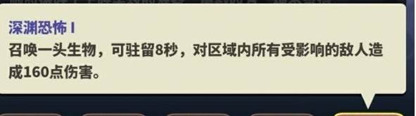 (4)水花四溅:全图伤害,但是伤害较低,可以在面对大量小怪的时候使用,作用还是不错,深渊恐怖:大招技能,在游戏中的属于输出控制技能,在游戏中的实用性较高,可以有效的控制敌人,整体上还是不错的。