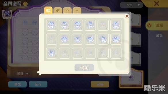 除了直接输出旋律的【谱写】界面,【预设】界面的音符可以任摩选用哦,材料不够也能先当上作曲家!