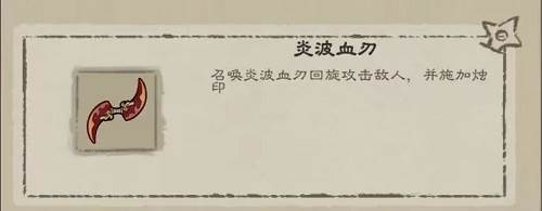2、化身法宝炎波血刃--召唤炎波血刃回旋攻击敌人,并施加烛印。(烛印能使死亡的敌人产生爆炸)