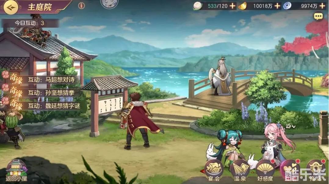 字谜玩法:与武将进行互动,武将会提示出一句话,或者是一句古诗,再有四个答案选择,根据字面上的意思,回答正确答案后,便会获得奖励。