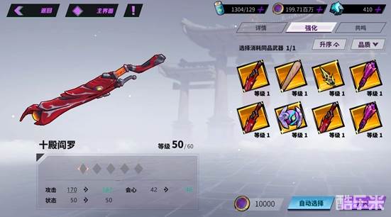 武器达到自身星级的上限后,即可以消耗同品的武器,进行升星。升星后,基础属性会获得大幅度的提升,而且可以提升武器的等级上限,从而获得更大的成长潜力。