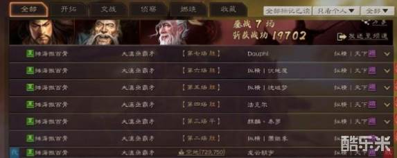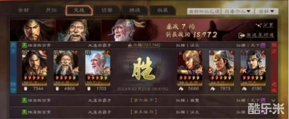 连战七场,全胜打出了19702的战功,基本上和天下无双差不多的水平了。