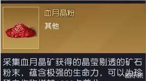 3.采集血月晶矿获得的晶莹剔透的矿在粉末,蕴含极强的生命力,可以为珍稀农作物增加1000点养分。