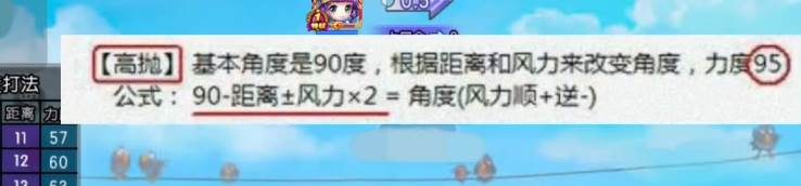 首先游戏有风力的设置,在风向不同的时候会有略微的差距,不过好在影响不是很大,所以直接根据力度以及距离的换算来找到抛物线的轨迹就是最简单的方法,比如根据图示的力度角度距离的公式,可以很容易的算出集中某些敌人需要什么角度和力度。