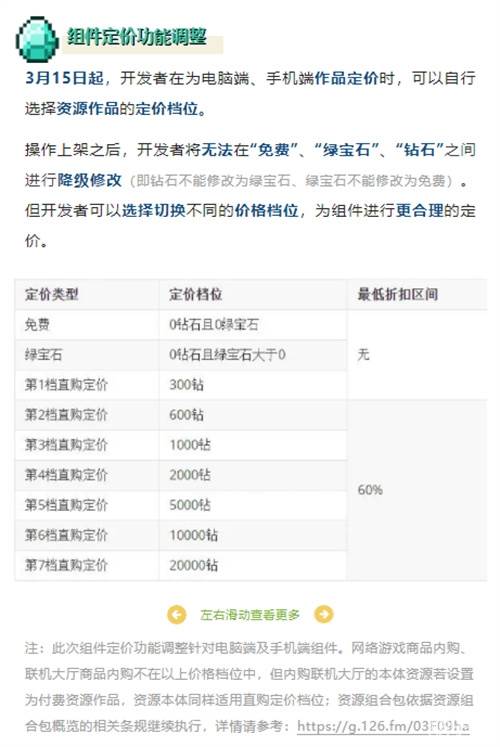 咱们先来看看公告的具体内容——2023年3月9日,《我的世界》发布资源中心功能优化公告,计划在3月15日起对资源中心进行全面优化升级,其中包括退款功能以及付费组件定价调整,其功能调整主要是以下三点: