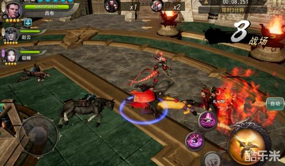 进入游戏还是老游戏那一套,平面闯关游戏不免让人想到很多的换皮游戏,游戏的闯关模式中我们可以选择三名已拥有的三国武将进行战斗,每个武将都有两个伤害技能和一个换人自动发动的技能,游戏的每关流程便是一路过关斩将击败所有的敌人,而这正是游戏宣传中所说的“无双”玩法。