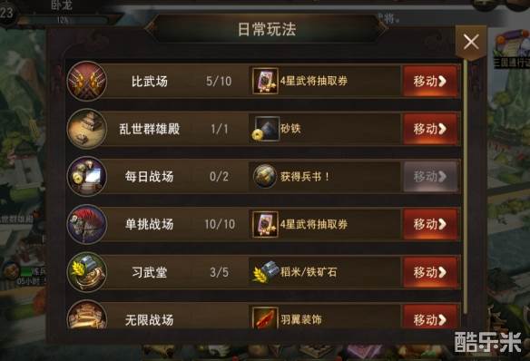 游戏中的养成分为两个部分,家园建设和武将培养。