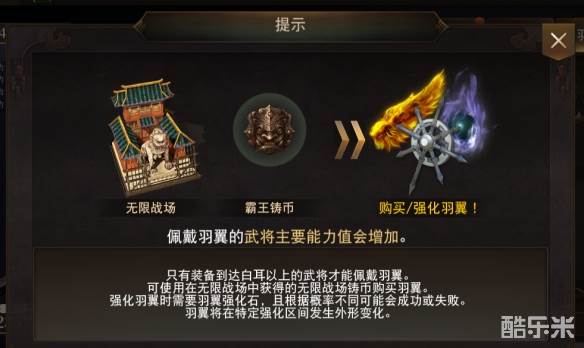 装备等级到达白耳以上时便可以给武将装备羽翼,这里的羽翼也需要去肝活动才能获得,虽然游戏不氪但就养成内容而言也是非常的肝。