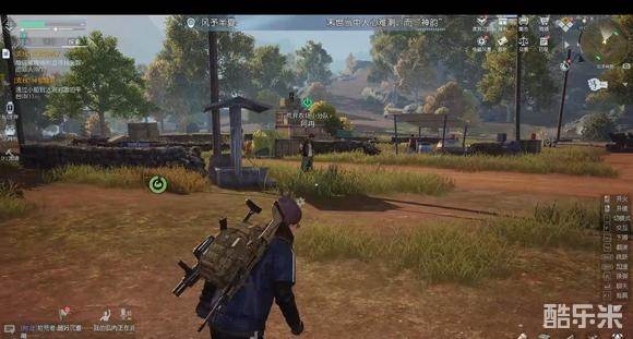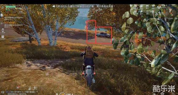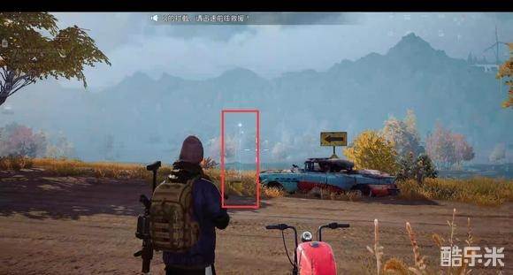 拿到之后,我们召唤载具,可以看到,在我们的旁边有一个野外庄园,我们沿着庄园的右侧向前行驶,再经过一个斜坡之后,我们就会来到一条土路,在土路上有一辆废弃的绿色轿车,在轿车的旁边,有一个拍照位置。