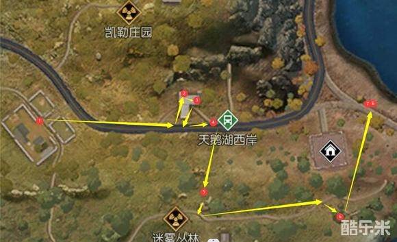 完成野猪王的任务之后,我们沿马路前往天鹅湖西岸的传送点,在路途当中,我们会遇到一个加油站,在加油站的收银台,我们可以找到一个保险箱,在加油站的仓库,我们还可以找到一个物资箱子。