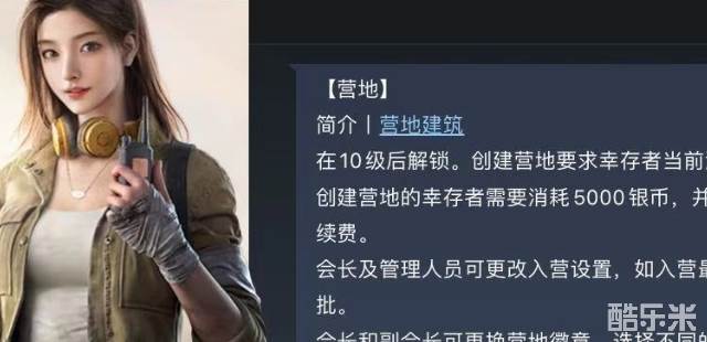 在游戏中,完成了前期的新手任务之后,就会开启营地地图了。营地是由游戏玩家们创建的,可以选择加入或者自己创建。创建营地的要求是等级到达10级,需要耗费5000银币做出基础资金,而且每天需要在营地内举办各种活动,当然付出多收益也多。在游戏初期还是比较好建立的,对于新手玩家的话还是先选择加入营地吧。