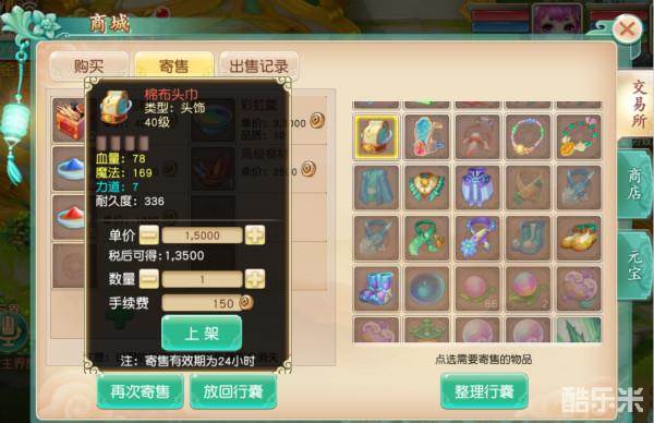 若您背包内有多余用不着的装备、道具或其他消耗品,可以打开商城界面,进入交易所系统,然后点击背包内需要寄售的物品,变回出现相应的寄售上架界面,您只需填写好相应的单机以及数量后,便可立即上架该物品,另外系统会相对应的扣除您一部分的手续费。手续费的多少由上架物品的价值高低决定。