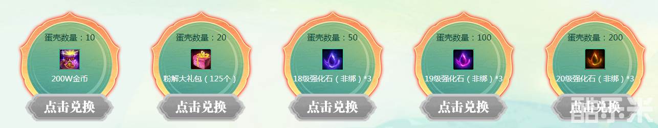 同时砸蛋还会获得蛋壳,积累的蛋壳还可以兑换额外奖励哦,最高可兑换20级强化石哦!觉得自己运气不错的小伙伴千万不要错过啦~