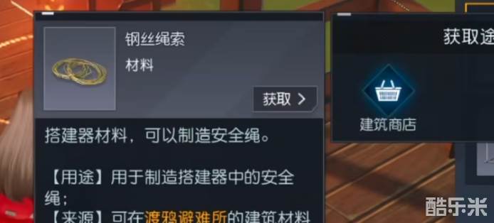 此处的安全绳主要作用就是帮助玩家从高塔上快速的下降到下面,其样式也就是一个滑轮搭配上一根很长的绳索,而它是需要通过制作才能获取到的,大家在自己的制造面板中便能够看到这类物品的制作所需要的材料有什么。
