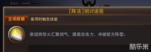 如果之前没有使用过袁绍,居然需要了解技能效果,第1个主动技能是使用手中常见向前方挥舞,进行多次打击。不仅特效好看,而且拥有很强节奏感,第2个将自身怒火全部汇集到宝剑上,发射出剑气可以冲破前方敌人阵型,提高攻击力。这两个主动技能自然有顺序,需要先将攻击力提升上去之后打破阵型,而后再用另外一个持续收割,总体伤害量很可观。袁绍替补出战可以造成范围伤害,外加额外眩晕效果。