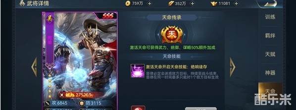 周瑜要求:御魂怒目,医术达到专精,level达到2之上。在这个排兵布阵中,是主火力点,神将觉醒是越高越好。
