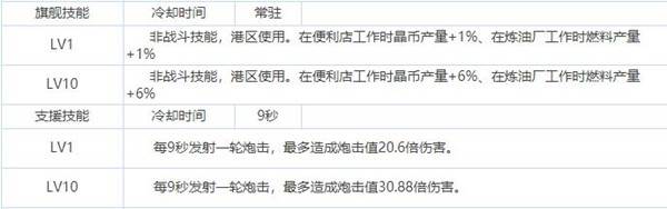 非战斗技能,港区使用。在便利店工作时晶币产量+6%、在炼油厂工作时燃料产量+6%