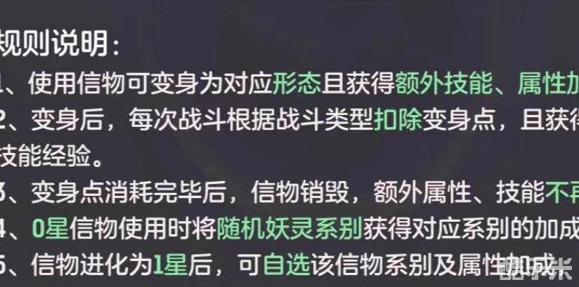 ①信物(变身卡)有一个点数,不可充能,用完就消失