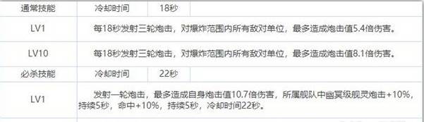 作为旗舰时,且所属舰队航速少于或等于23节的舰灵多于或等于4只,所属舰队炮击伤害加成+18%、命中+ 10%