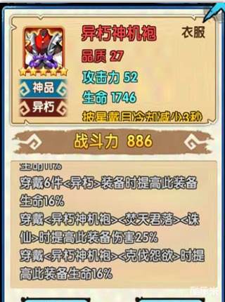 异朽神机袍是花千骨手游中最强防御套装,在生命加成上提升的属性也是最高的。