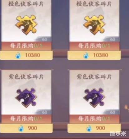 商店获取:商店在游戏中是有很多分类的,在商店的侠客分类中玩家可以使用修为来兑换橙色侠客的碎片。这类碎片兑换的消耗不仅高,同时每月还有数量的限制,所以说想要累计到六十个的话该方式不是唯一要操作的。除了侠客商店中仙盟和幻境商店也是可以获得侠客碎片的,大家有资源的可以去兑换一波。