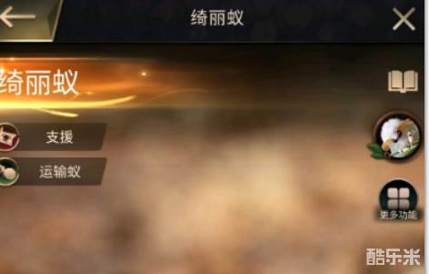 绮丽蚁属于新手必备蚂蚁,外观很是好看,不少女孩子都是很喜欢的,基本上我们完成新手任务都是可以获取的,不过这个蚂蚁的定位属于运输蚁,实力一般,但是速度极快,可以先手输出。