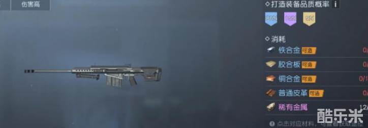 由于是金色珍品武器,它所用的素材需要四个铁合金,四个胶合板,十个铜合金和四个皮革,以及四个稀有金属,材料方面略微稀缺。但对于绝大多数玩的时间较多的资深玩家而言,这些东西还是可以拿出来的。耐久方面,250耐久中规中矩,精度和初速都是一流水准,垂直稳定和水平稳定也保持在中等偏下位置,但作为狙击枪来说,这点后坐力已经足够应付了。