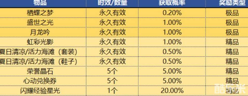 为了给大家带来更好的游戏体验,现将游戏内各类活动以及道具中的核心奖励获得概率进行公示,希望能够对您有所帮助。