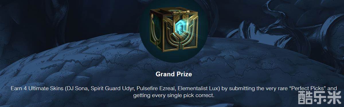 据悉,如果全部预测都对的话,他将获得终极皮肤大奖:DJ琴女,灵魂守卫乌迪尔,未来战士EZ以及元素使拉克丝。