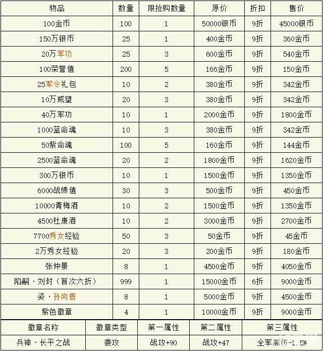 活动期间,单日充值满30000金币,即可额外获得150000徽章碎片
