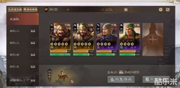 一只队伍最多可以上场5个武将,不同品质的武将的统御值不同,通过升级主城内的建筑可以提升统御值上限,以携带更多高品质的武将。
