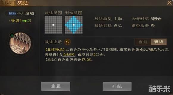 八门金锁为s级自带战法,拥有强力的技能效果,小编特地为大家带来了该战法的效果属性图,感兴趣的小伙伴们就快来和小编一起看看这篇三国志战棋版八门金锁战法介绍吧。